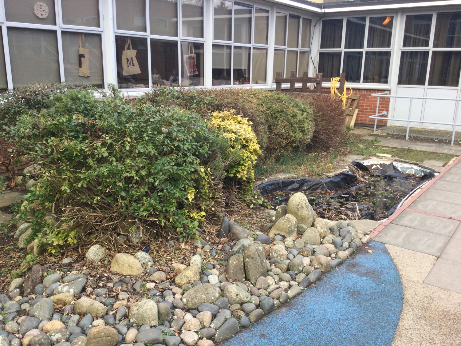 The site team have been impoving this area over the last few months and have made the space a welcome area for pupils to use at break and lunchtimes. "The old pond had a leak and needed replacing" said Andy Cadogan the site manager, as seen in this picture.