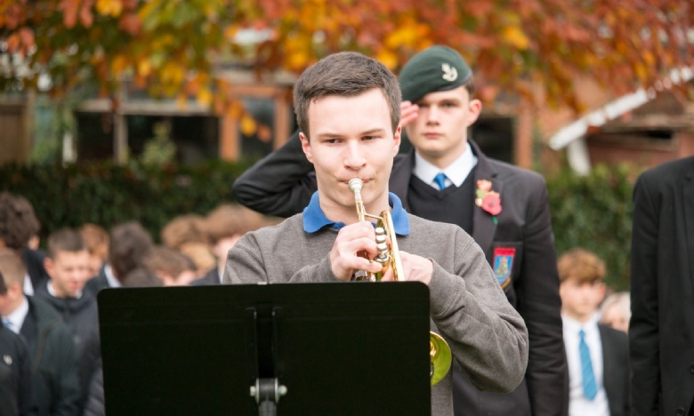 Today the whole school community gathered around the flagpole to observe a two minute silence to remember those people who have lost their lives in war. The ceremony was led by Mr Burke and included the playing of the Last Post and Reveille by Year 12 pupil Ben Carroll.