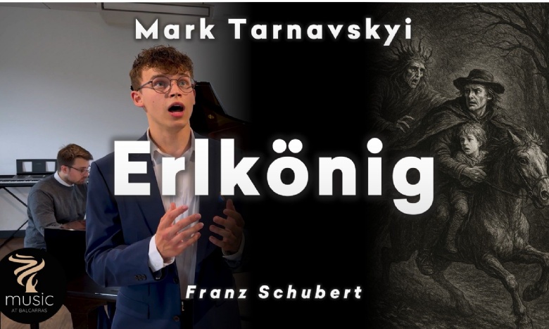 The singer takes the role of four characters — the narrator, a father, his small son, and the titular "Erlking", a supernatural creature who pursues the boy — each of whom exhibit different tessitura, harmonic and rhythmic characteristics. This is a technically challenging piece for both performers and accompanists. Mr Howell is accompanying Mark on the piano.