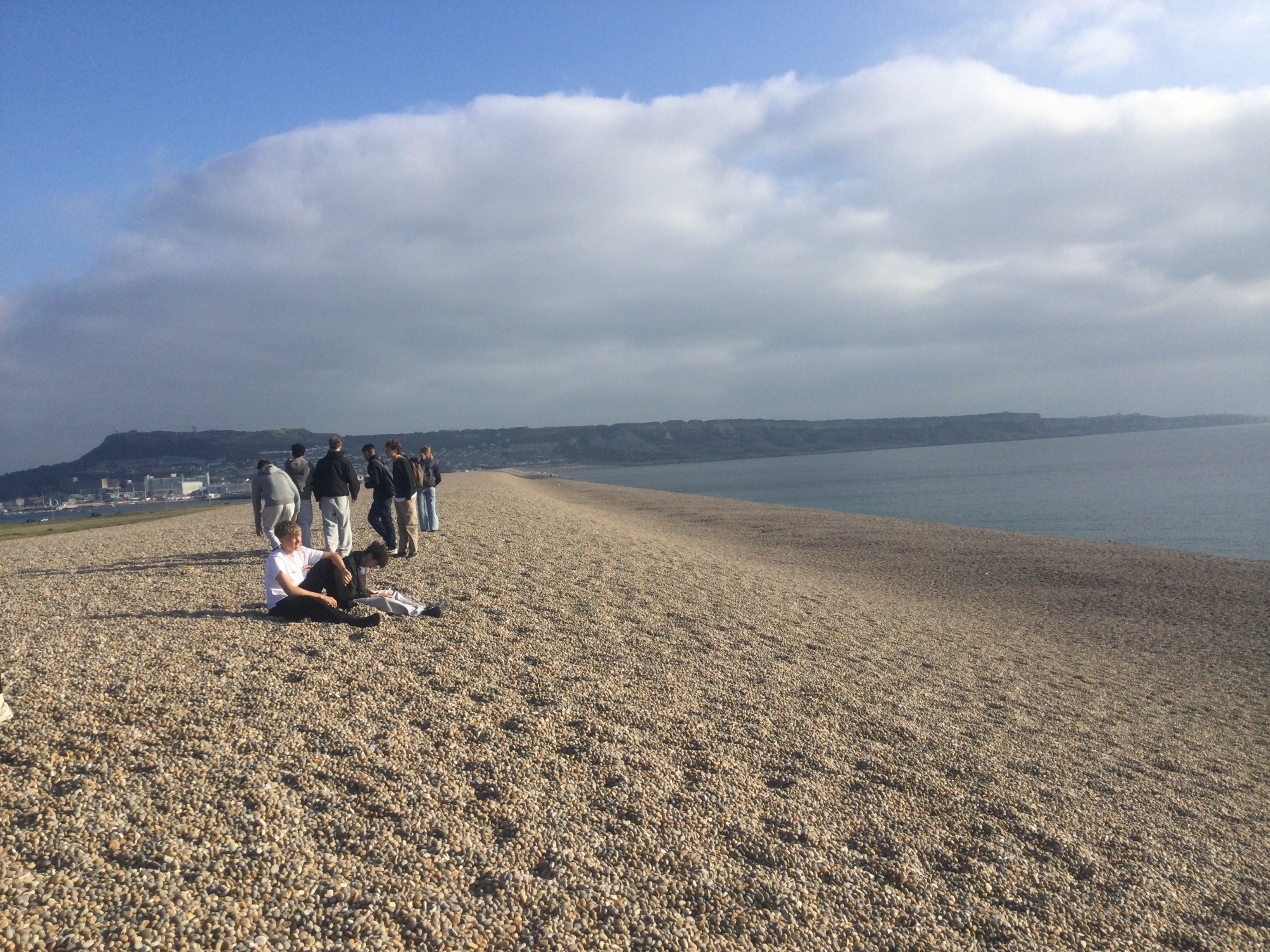 After this first stop we headed to Chesil Beach, Europes largest Tombolo, a huge depositional barrier beach that links the mainland with the island of Portland. There are apparently 180 billion pebbles on this beach, although we are not sure who counted them. This is a great landform to consider how coasts change over time with shifting currents and sea levels.