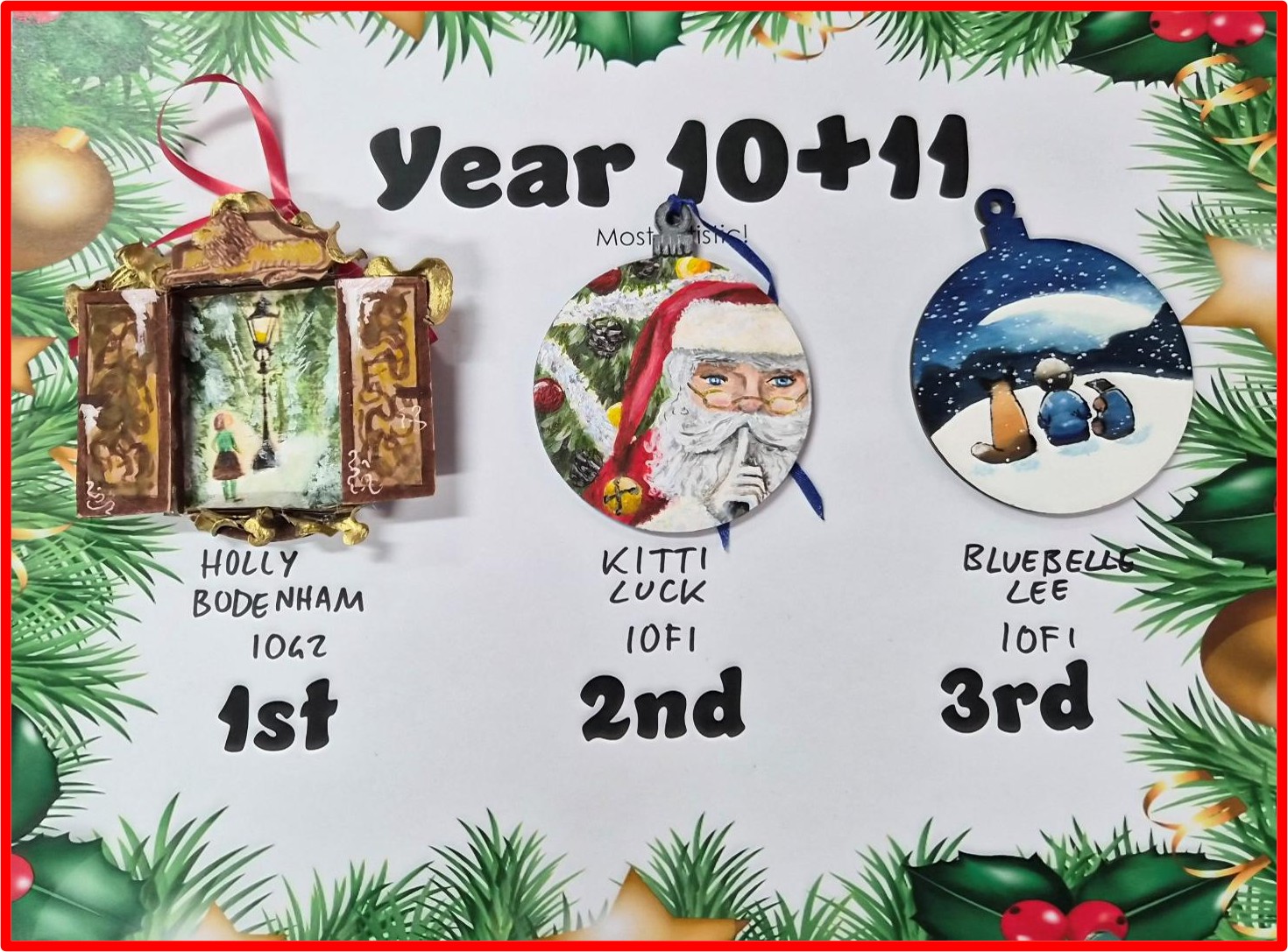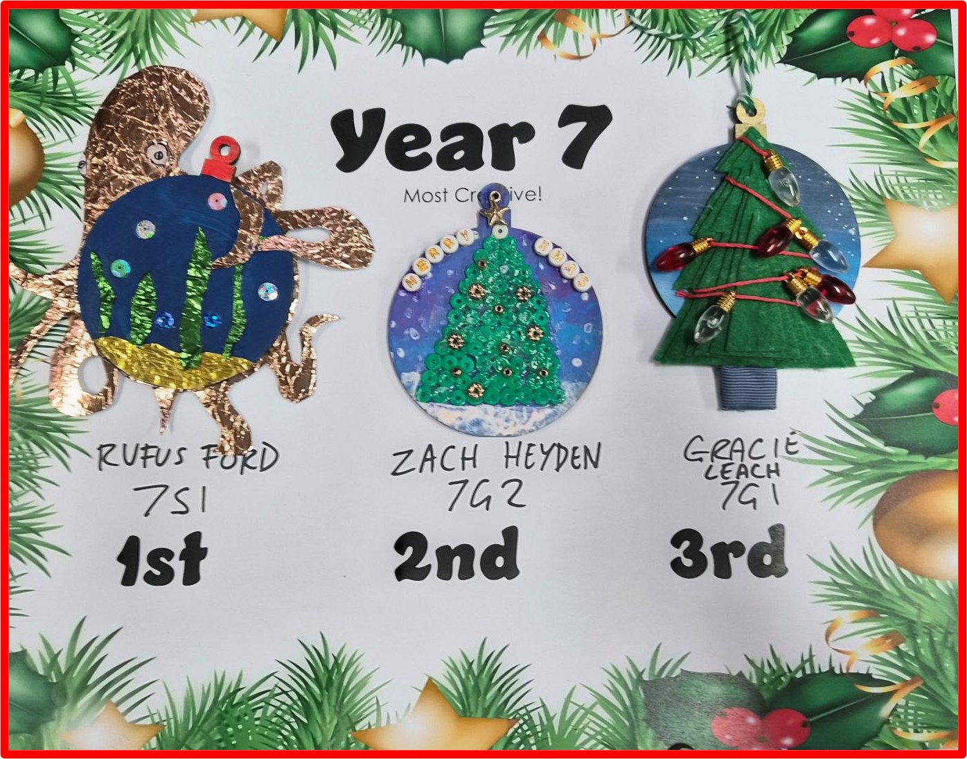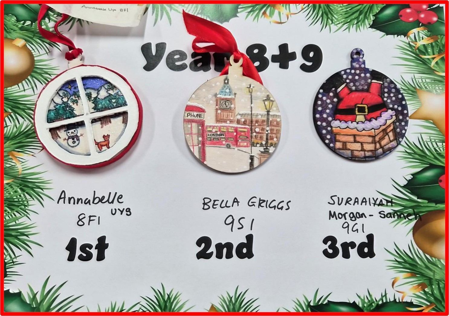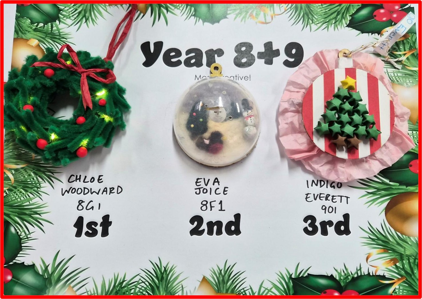The school has completed this years bauble competition. All year groups were invited to take part through tutor groups. The judging was conducted by the schools SMT and pastoral team.