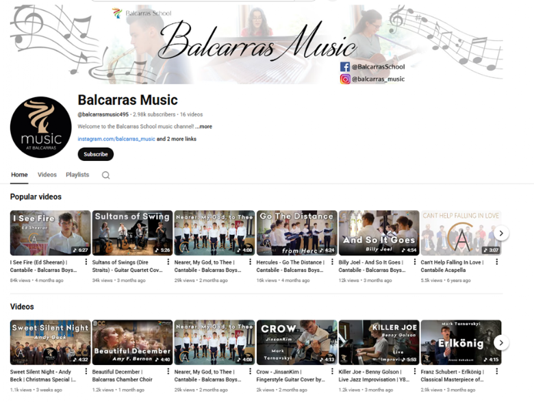 Yesterday the Balcarras Music Channel went over the 200,000 hits mark. The channel has had an unbelievable number of views since the music department started issuing a new set of videos in September. The latest additions to the repertoire were the Chamber Choir in December and the joint recording of Chamber Choir and Boys Cantabile on Christmas Eve.