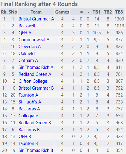 Mr Godfrey and Mr Rothwell took the Balcarras Chess Team to the Gloucestershire Championships in Bristol. We took an A and B Team and they both did very well. We didn’t win but our team is very young and we are building for the future. Well done to everyone involved. Here is the final table: