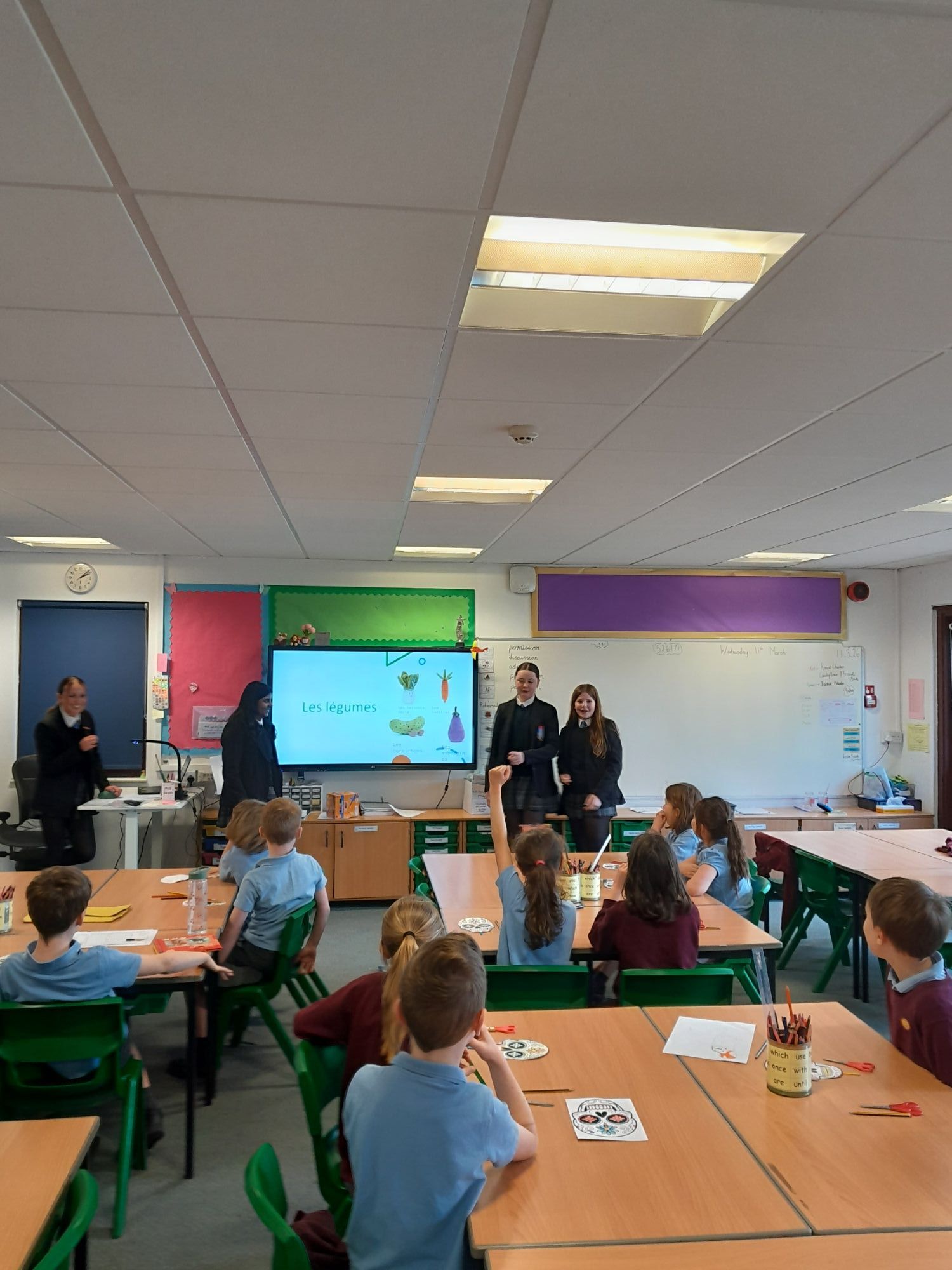 Pupils were able to plan and lead 30-minute sessions with the pupils where they taught them about cultural aspects of each language such as Day of the Dead and the French Carnival as well as helping pupils to make their own skulls and masks. Pupils also taught pupils in the languages, delivering sessions on French food and hobbies, as well as Spanish animals and Russian greetings. Our pupils worked conscientiously to prepare for this visit, rehearsing their lessons and independently thinking about the sequence of activities as well as ensuring that they had plenty of games to keep the primary school children entertained!