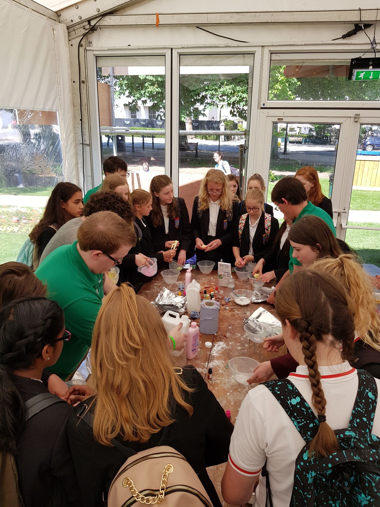 A short while after, we had lunch on the grass with the sun shining on us followed by a fantastic tour of the main hall which was filled with a huge variety of stools and interesting topics for all ages. We understood what dementia was like with vertical reality, there was many experiments with sound waves and bioluminescence to see how dirty our hands were!