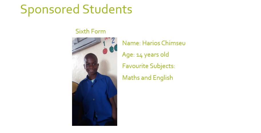 We are mainly working with members of staff and a charity from Chirandzu. The first part of the project is sponsoring 5 students. Each of the houses (and the 6th form) at Balcarras has adopted one of these students. Each student goes to Nyambadwe secondary school .