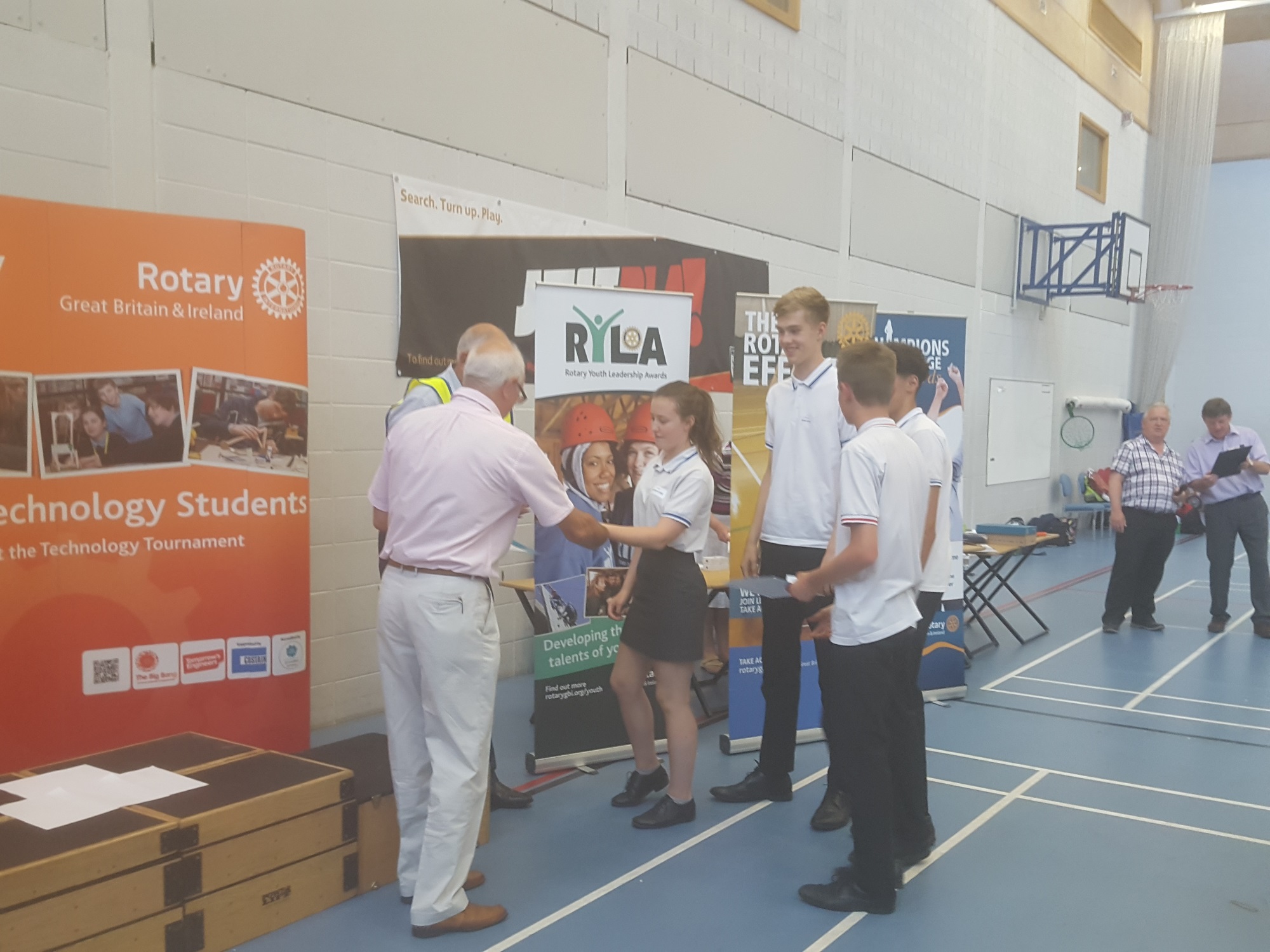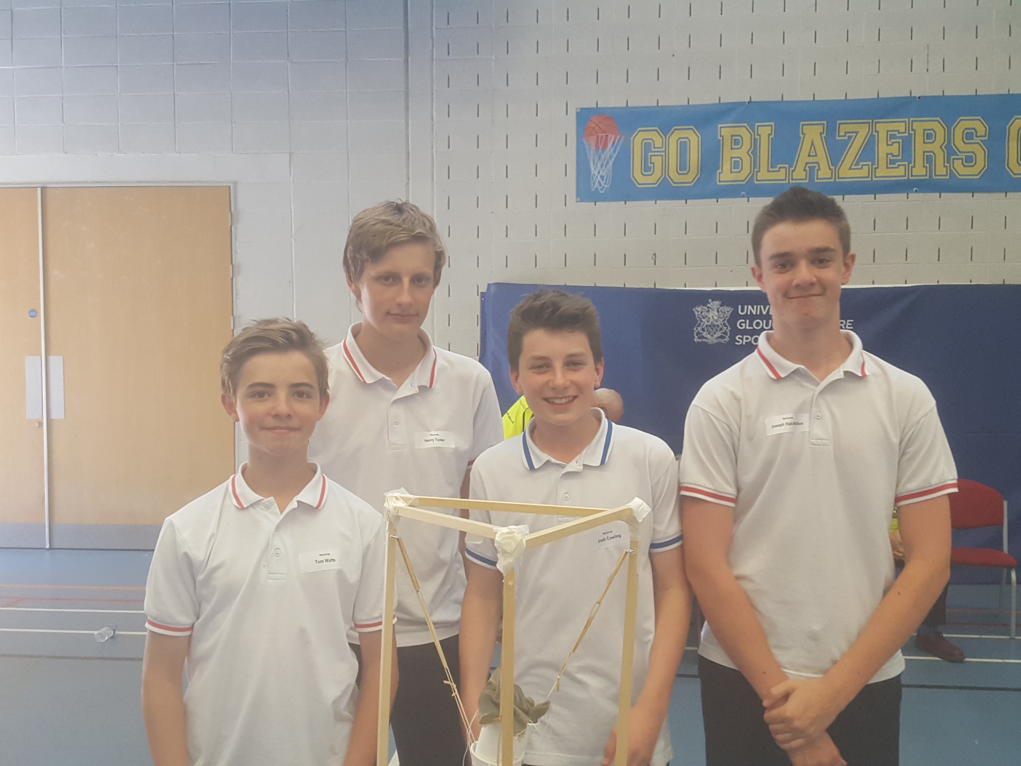 On Wednesday 27th of June, 8 Y10 pupils took part in the Gloucestershire Rotary Technology Competition at Gloucestershire University. The teams had no idea what there challenge would be on the day but were just asked to bring along a range of tools and equipment. When we arrived I was ushered off to the canteen and told that I couldn't help or talk to the teams at all throughout the day. The task was to design and make a structure that would fire a plastic ball up to a height of 3m, through a hoop and then descend with a parachute. It also had to be remotely triggered - quite a challenge.