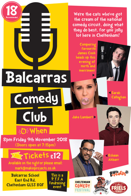 Friday 9th November Balcarras school is hosting a comedy night to raise funds for the PTFA