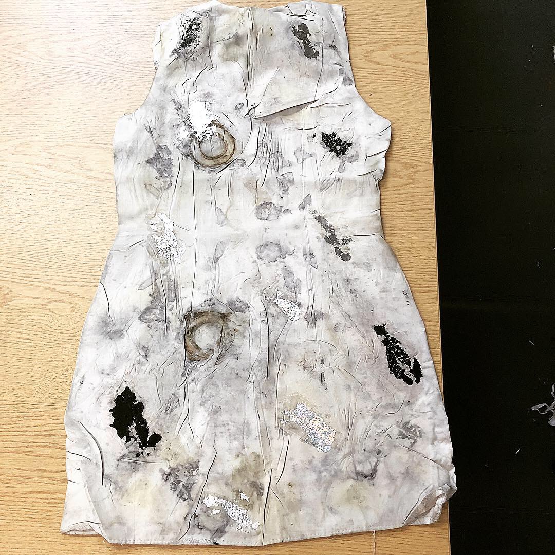 The dress has been made from scratch by a year 10 student and was dyed in the same way as the bags.