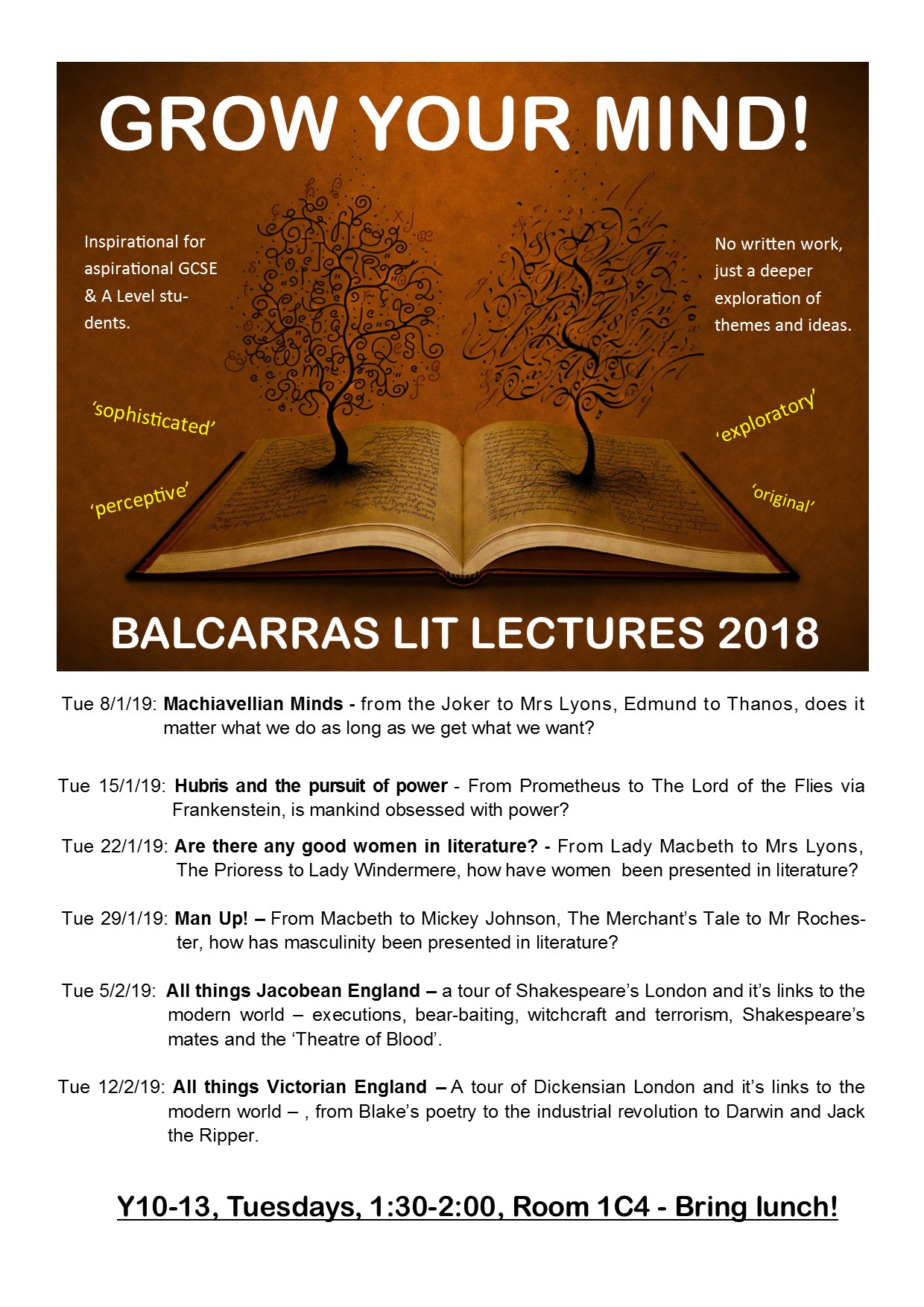 A series of inspirational lectures encouraging pupils to 'grow their minds' begins this year for GCSE and A level
