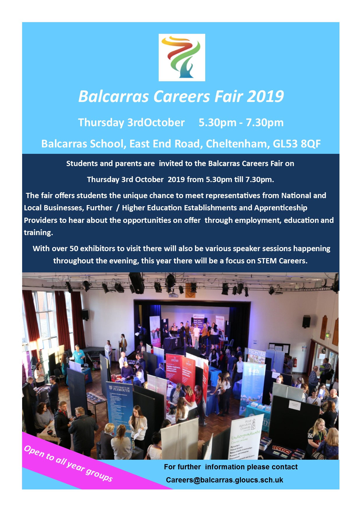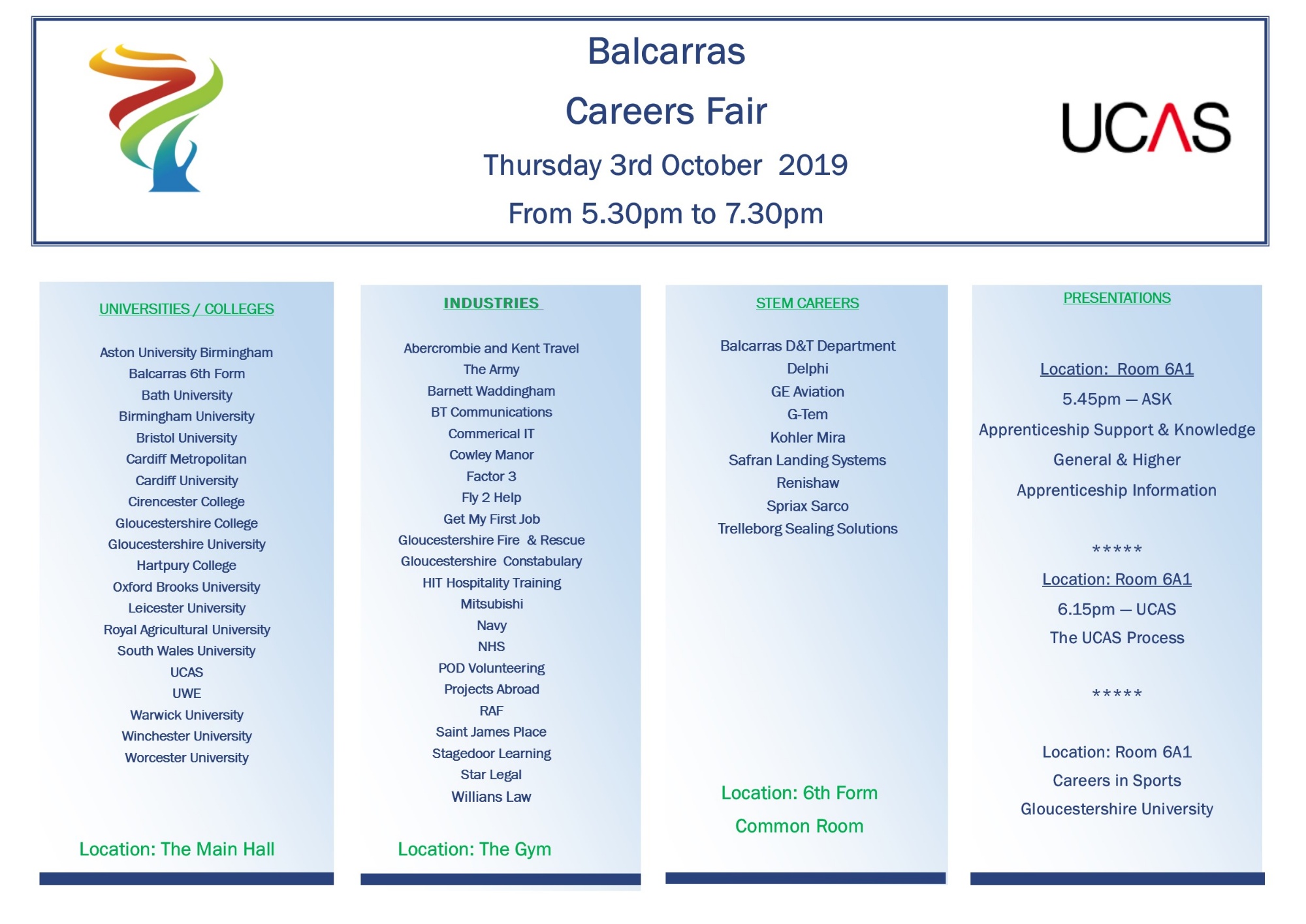 The fair offers students the unique chance to meet representatives from National and Local Businesses, Further  / Higher Education Establishments and Apprenticeship Providers to hear about the opportunities on offer  through employment, education and training.
