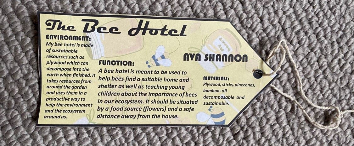 'Year 9 product design pupils have been making Bee Hotels with Mr Johnson. Ava Shannon's is just one fantastic example and it's lovely to see it being put to use straight away. Great work Ava!