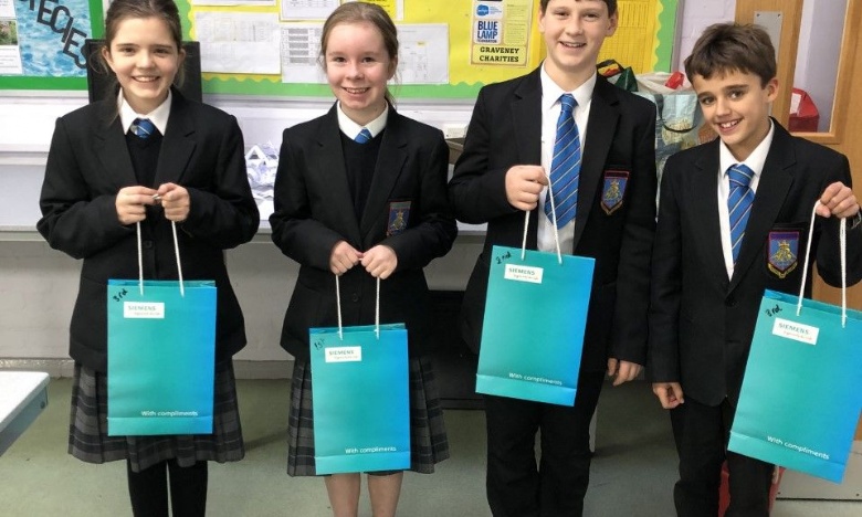 'Siemens school challenge' prizes for four Balcarras Y7 students.