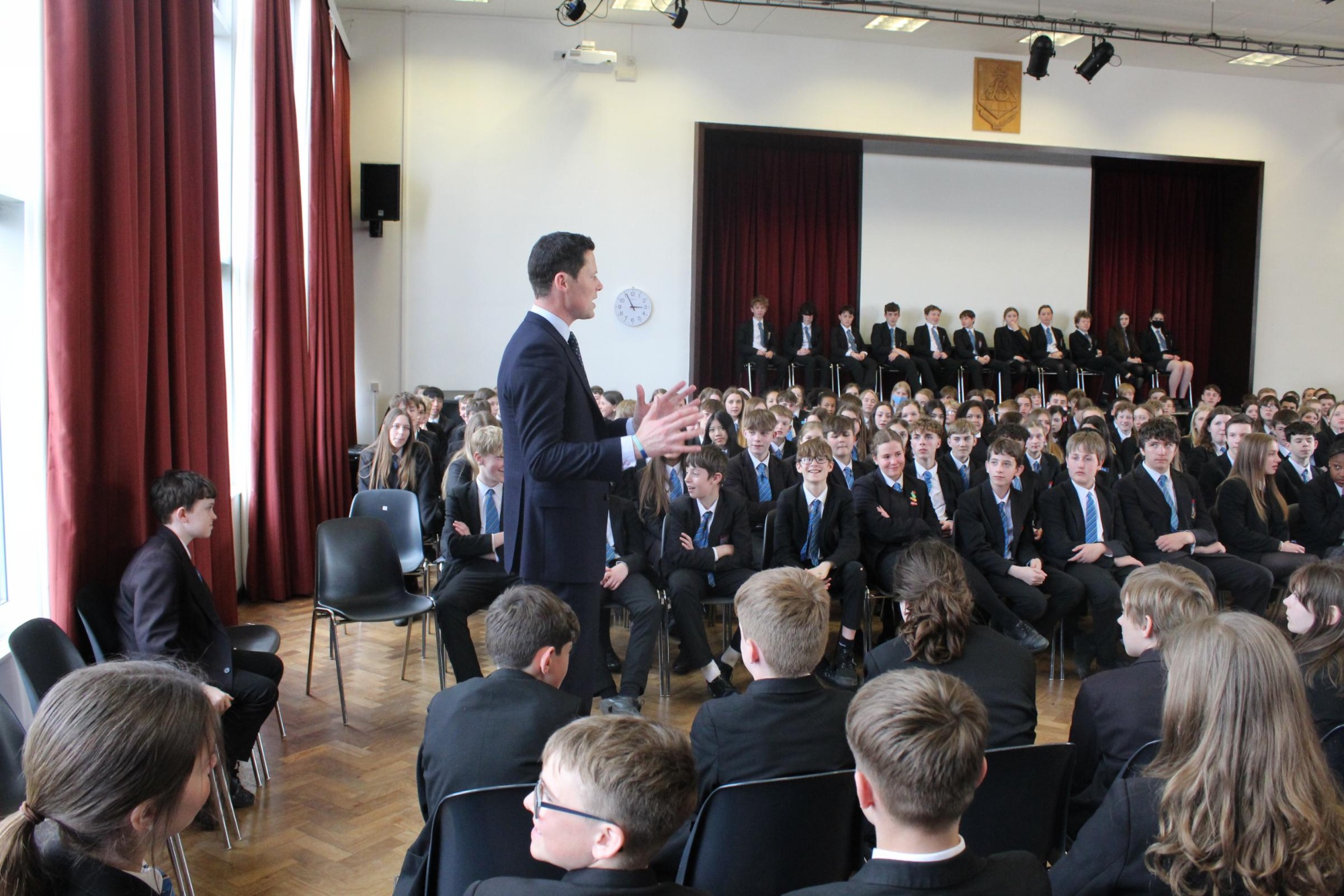 Pupils in Year 8 and 9 spent an hour with Alex Chalk on Friday 25th March. Alex talked to them about his role as MP and Solicitor General and also explained how the House of Commons works. We set the hall out to resemble the House of Commons and Alex talked the students through who is who in the House and where they sit. After his presentation there was a chance to ask questions and our Year 8 and 9 students really put him through his paces. There was a broad range of questions from climate change to the cost of living, from Ukraine to managing stress and anxiety.