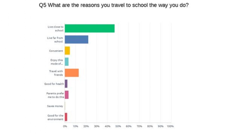 We have conducted an extensive survey on how pupils get to school. We had 757 respondents to this survey out of 1400 pupils in school.