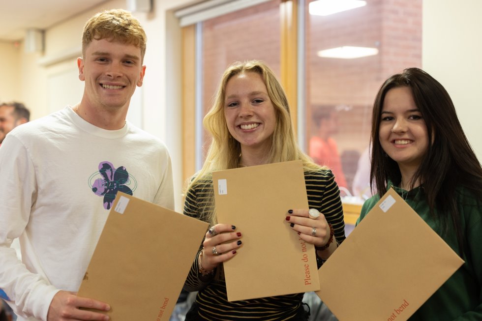 Callum Bates, Amy Saggers and Lily Gough, all 18, about to open their results.