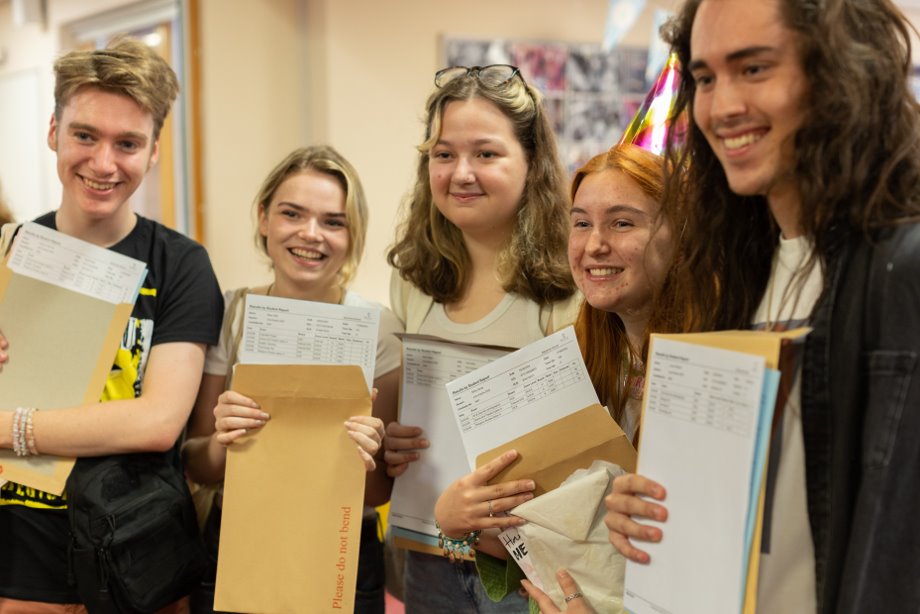 Fergus Murray, Macy Otter, Ru Hastie, Millie Darley and Louis Flintham, all 18, with their results.