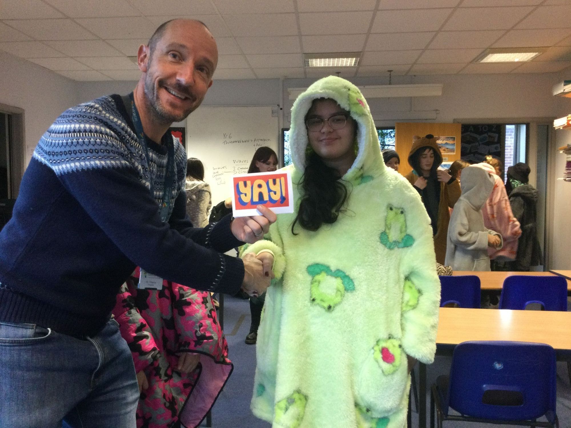 The Eco club ran a competition to see who had the best thick jumper of all the pupils around the school. The winner of a £20 voucher was Bev Doe in Year 12