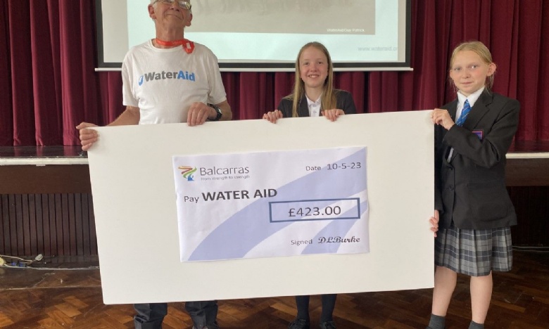 At the end of the presentation two pupils; Amy Pallister and Amelie Rowe donated a cheque from Balcarras for £423. This money was raised from a Mufti day that was held in Janurary on our thick jumper day from pupil donations.
