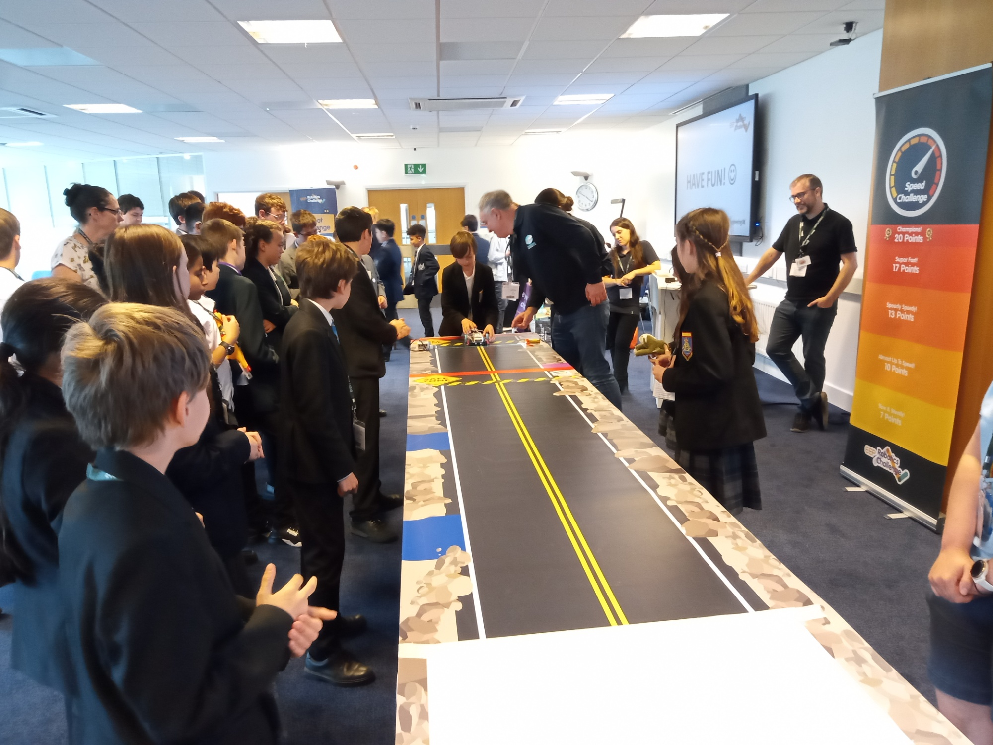 A team of 10 Year 7 students from Balcarras Robotics Club competed in the Southwest/Midlands Regional EEP Robotics Challenge on Monday 22nd May. Arriving in the morning at Warwick Trident College with their pre-built and programmed robots, the team quickly set out their plans for the day's competition. The first challenge was the Speed and Control Challenge where teams had to design and build a robot that would travel 2m, stop and then reverse back again, in the fastest time. Our team set a quick time of 4.6s but were closely followed by second place with a time of 4.8s. The second run saw the second-place team improve their time to 4.5s so they had to tweak the robot to see if they could beat that. A tense run saw Lucas (Speed Challenge Captain) put in a great time of 4.2s. A fantastic effort put the team in great spirits for the remaining challenges.