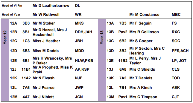 Year 12 students to arrive around 8.45am and go straight to the Sixth Form building, where they will be welcomed by the Sixth Form team and tutors.