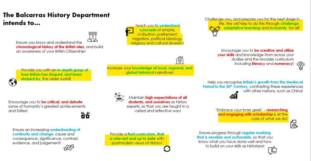 - Below is the History Department intent statement with key elements highlighted.