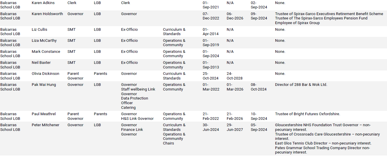 Balcarras LGB – Register of Governors