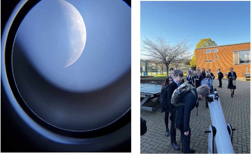 We are incredibly grateful for the new telescope from the PTFA. The astronomy club has been getting to grips with it and we've also had a couple of 'pop-up' sessions with at lunch time it to look at the moon (pictures attached). Alan Spring Wallis - Head of Science.