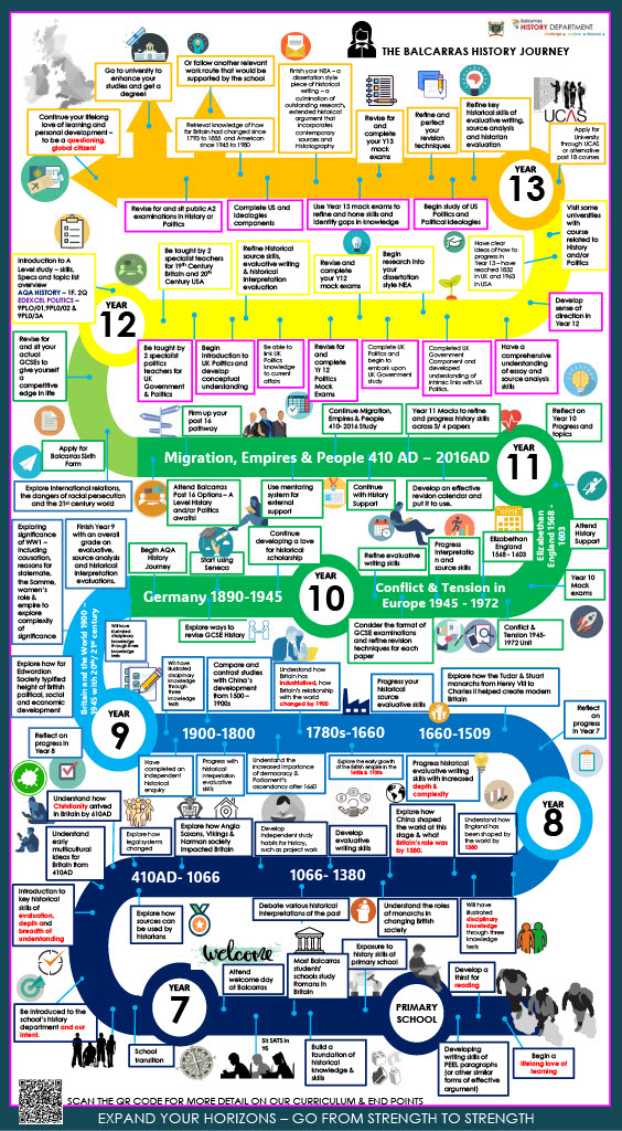 "Our history curriculum is designed to equip our students, regardless of their starting point, with a wide range of historical knowledge and skills, enabling them to fulfil their potential and realise their ambitions in the pursuit of becoming excellent historians as they progress through the Key Stages. "