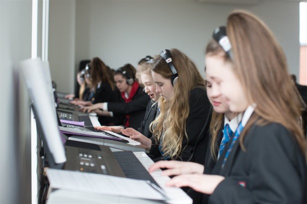 We offer a strong and recently revised KS3 curriculum, where all pupils have access to our outstanding resources. Pupils experience topics from Film Music to Indonesian Gamelan during Year 7, and will gain skills on the piano and with music software. Pupils are encouraged to use conventional notation in treble and bass clef to notate their compositions and to perform from. In Year 8, pupils further their musical understanding of the piano, develop their ensemble skills, and study a variety of different musical styles and cultures from around the world, exploring music from India and America. Year 9 provides an opportunity for students to develop their performance skills during the ‘Live Lounge’ extended project, for which students produce a performance of a piece of their choice in an ensemble and perform to the class. Throughout Year 9, pupils continue to develop skills in performing and composition using live instruments and on our computer technology programmes. Students study a wide variety of styles, genres and traditions including Electronic Dance Music, Theme and Variations and Film Music.
