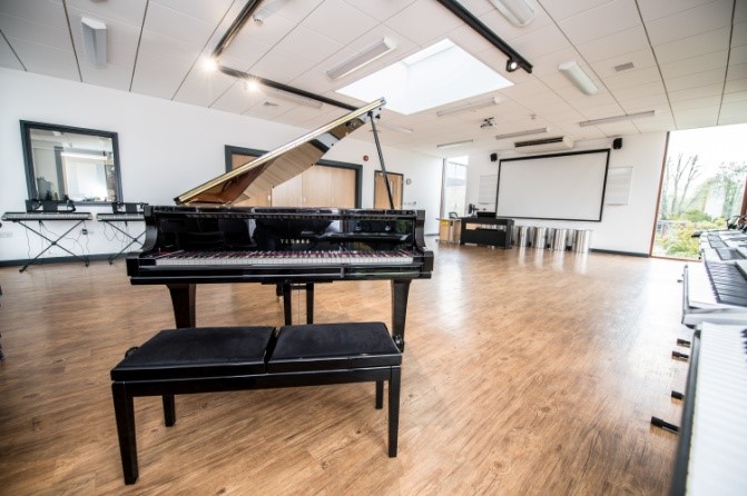 There is a dedicated study room for A Level Music students within the Music Department which includes computers running Sibelius, Musescore and Mixcraft. There are also eight practice rooms, one of which is again dedicated to sixth formers. Both the study room and practice rooms can be used by A Level musicians during Study lessons.