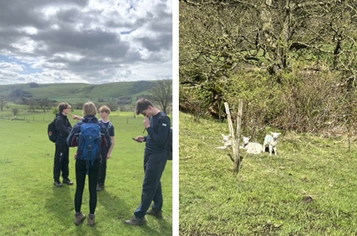 After layering up, we gathered for an inspiring (if slightly longwinded) pep talk from Sandy, before distributing the day kit amongst the team. This consisted of an emergency shelter, karabiner and rope, first aid kit, map and compass for our eager navigators- Laura and Harry. With a route planned out the night before, we set off through charming little villages with lush valleys surrounding us. Eventually, these streets turned to dirt paths and muddy treks through the countryside, but the fields were full of frolicking lambs which were enough to help you forget about the sludge seeping into your boots. After many rounds of ’celebrity guess who’ and ‘what can come to the party’ games, we followed a steep incline of steps to the first peak of Lose Hill.