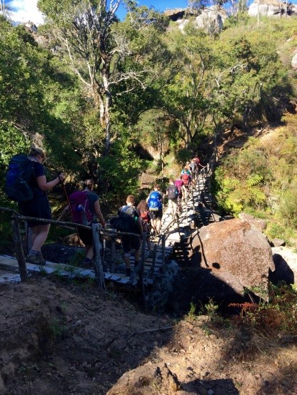We stopped here for a brief break and watched a colourful array of paragliders soar across the lush landscape. Any removed layers from the hike up were re applied for the windy journey across the hilltop. We were met with more inclines and stone slab stairs, but even with burning thighs, we were all motivated by the prospects of gourmet tuna and cheese sandwiches waiting for us. Not long after, the second peak was reached, and the view was just as idyllic as the first.