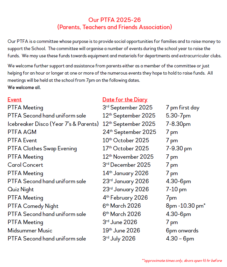 *This is a PTFA event for both parents and Year 7 pupils only.